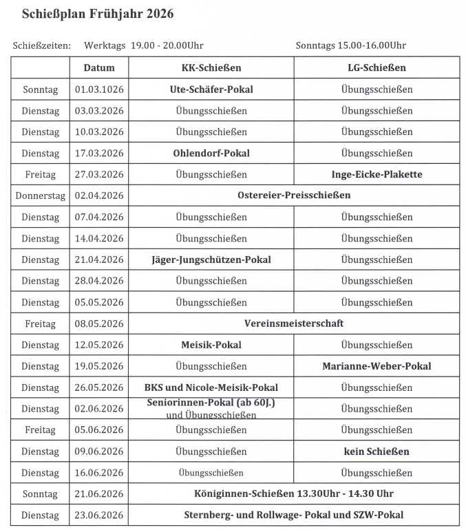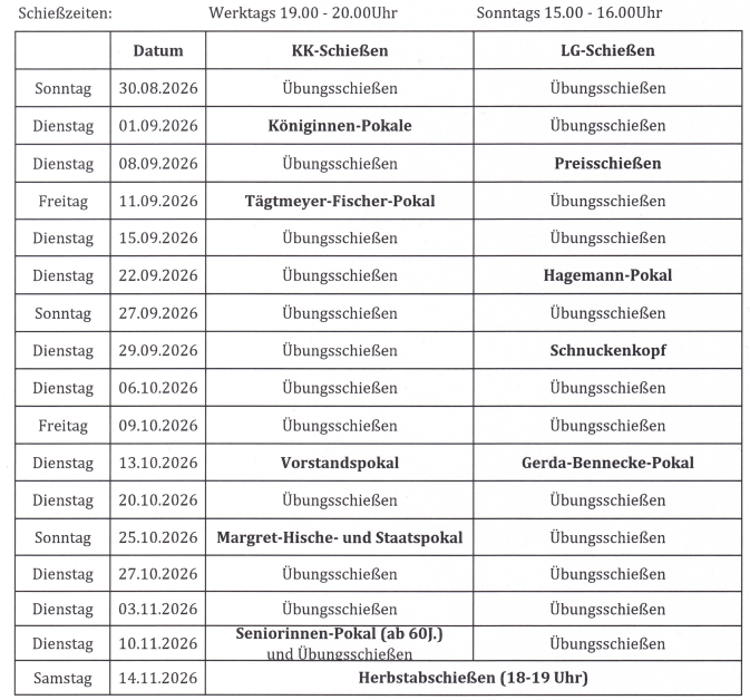 Schießplan 2026